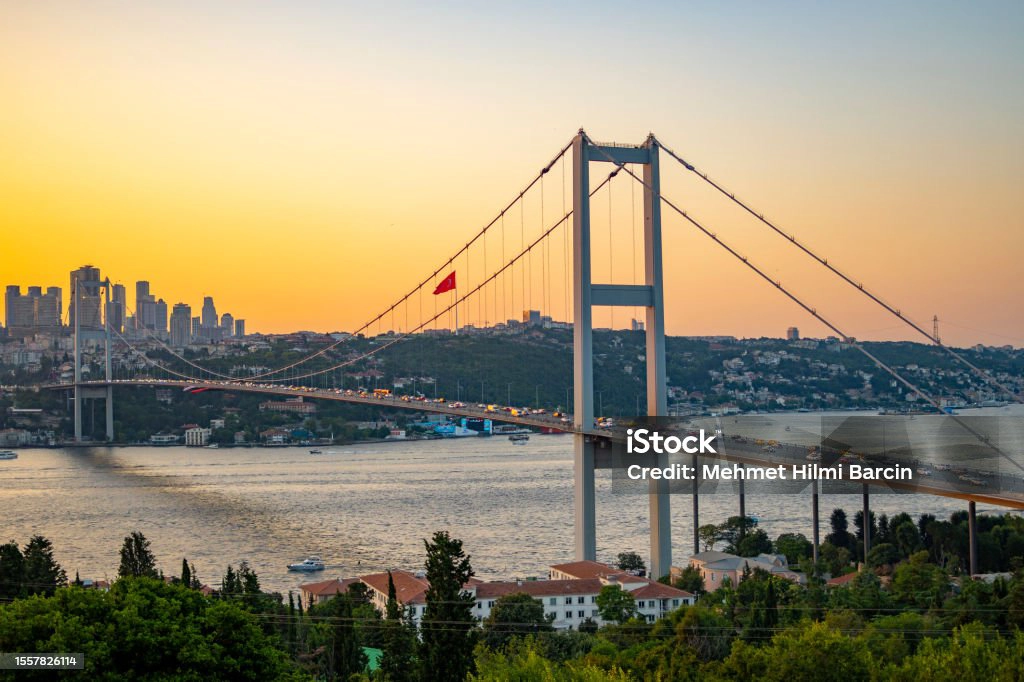 El puente del Bósforo de Estambul, el puente del Bósforo al atardecer